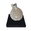 Yesería creada a mano y decorada con pigmentos minerales y elementos naturales, pátinas térreas de diferentes continentes y con aplicaciones de materiales nobles, lo cual convierte a la pieza en única y diferente al resto.